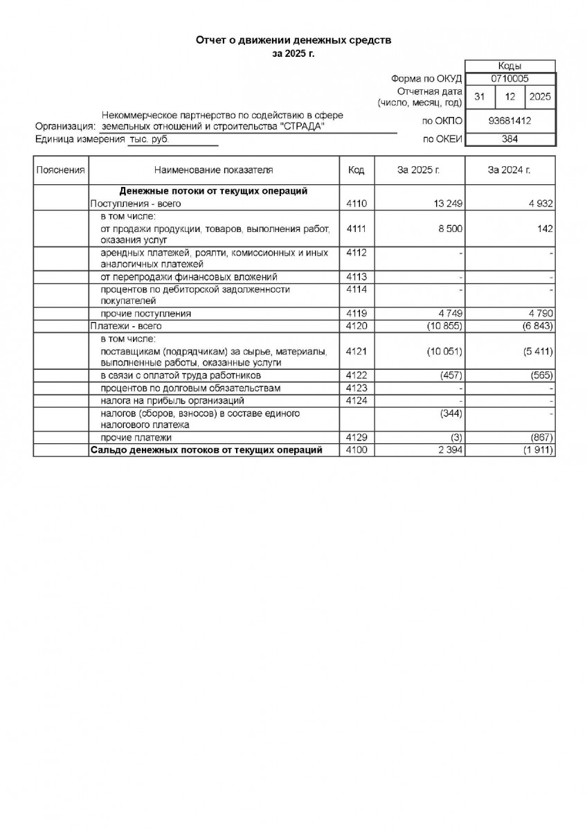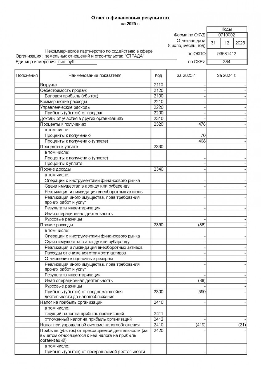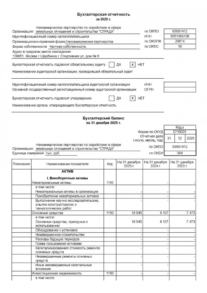 Некоммерческое партнерство по содействию в сфере земельных отношений и строительства «СТРАДА» (ОГРН 1065074055584, Адрес: 108851, Город Москва, Город Щербинка, Спортивная улица, дом 6, ИНН 5051009106, КПП 775101001) публикует отчетность, в соответствии с Федеральным законом «О некоммерческих организациях» от 12.01.1996 N 7-ФЗ: