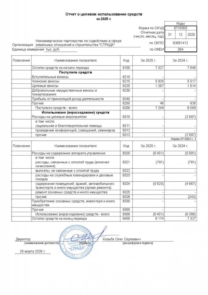 Источник: НП ССЗОС «СТРАДА» 31.03.2026