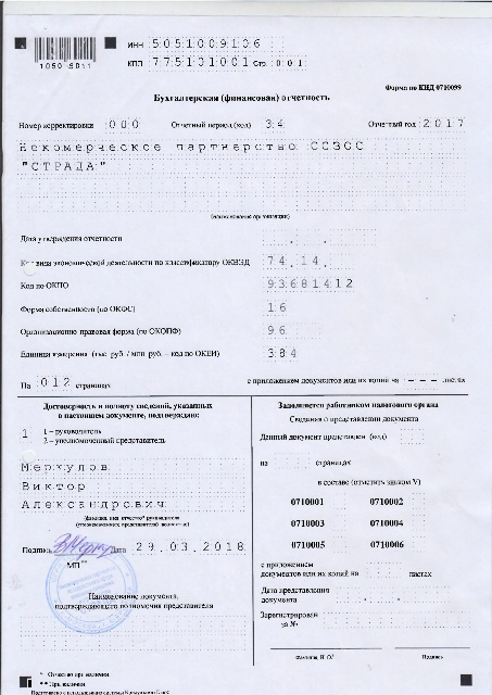 Некоммерческое партнерство по содействию в сфере земельных отношений и строительства «СТРАДА» (ОГРН 1065074055584, Адрес: 142171, Город Москва, Город Щербинка, Спортивная Улица, 6, ИНН 5051009106, КПП 505101001) публикует отчетность, в соответствии с Федеральным законом «О некоммерческих организациях» от 12.01.1996 N 7-ФЗ: